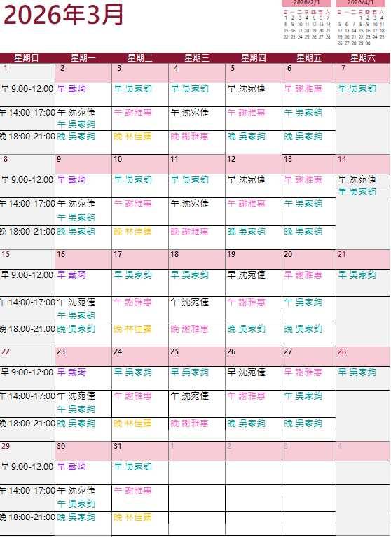 #3月班表